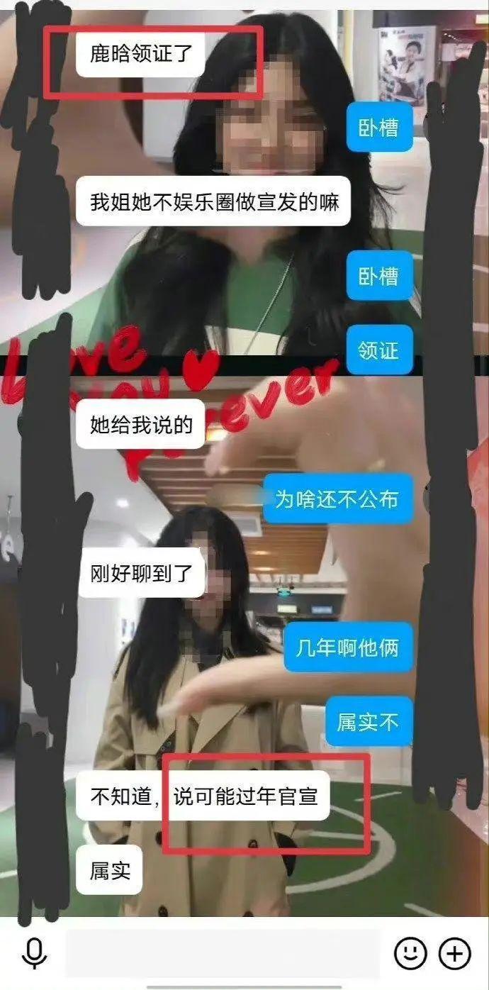 有网友发现,其实在韩媒报道出来之前,网上就已经流传出一段聊天截图,里面的内容正是说的鹿晗跟关晓彤,聊的话题也是关于两人已经领证的消息,聊天记录中有一位网友说自己的姐姐是在娱乐圈做宣发的,告诉她鹿晗领证了,还说消息属实,可能过年官宣,该网友的爆料正好跟韩媒的爆料对上了,难道这次是真的?