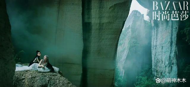 这个杂志封面是实景拍摄,有山、有水,是大家熟悉的 " 水墨中国 ",拍摄主题也是在山涧中感受武侠之美,就是人物表达莫名其妙,还一人分饰两角,不伦不类。
