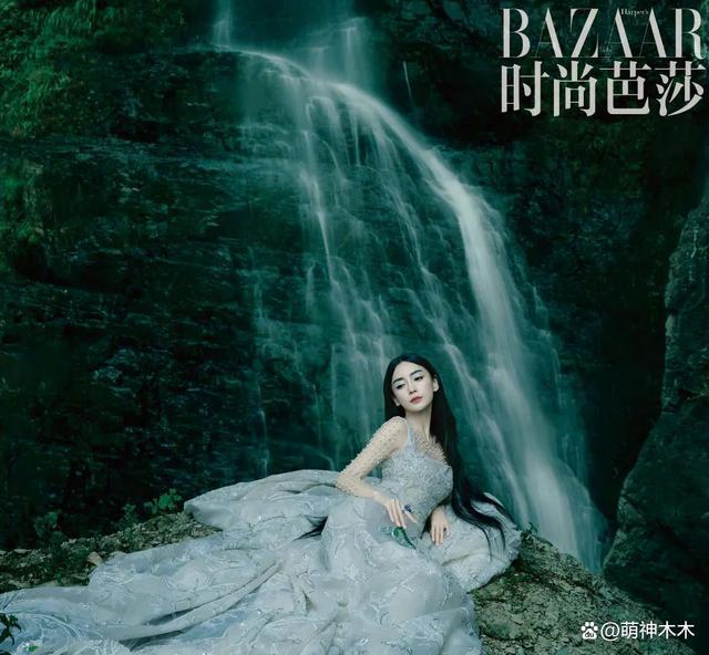 这套白色礼服造型就是红毯风格,搭配上恬静的山水就格格不入,很像抠图背景,杨颖的姿势及摄影方式都跟摄影棚拍摄没太大区别。从这儿也能看出,杨颖硬照翻车也是必然,习惯了固定动作拍摄,当场景转换,就没了招数。