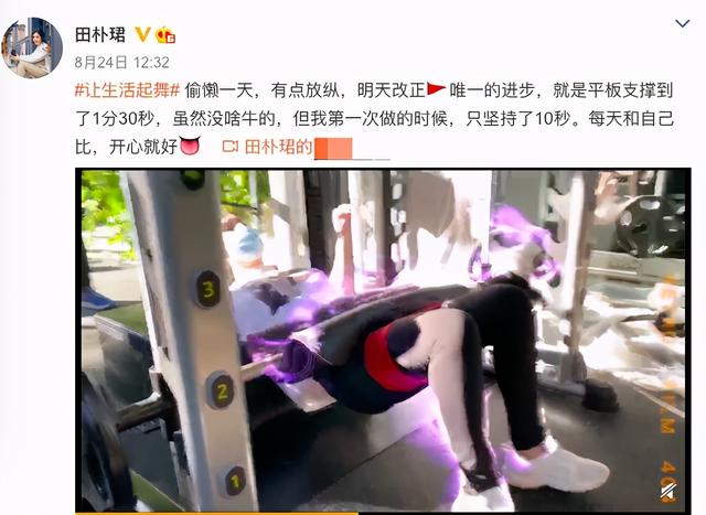 之后田朴珺也陆陆续续晒出了更多视频,有的是在健身房做锻炼,放言夏天之前绝对不能胖。
