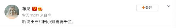 这位叫“荐见”的博主认证是某公众号创始人,粉丝高达70多万,影响力不小。加上王石和田朴珺的感情生活也是大众关注的焦点,这则爆料很快就在网上发酵了。
