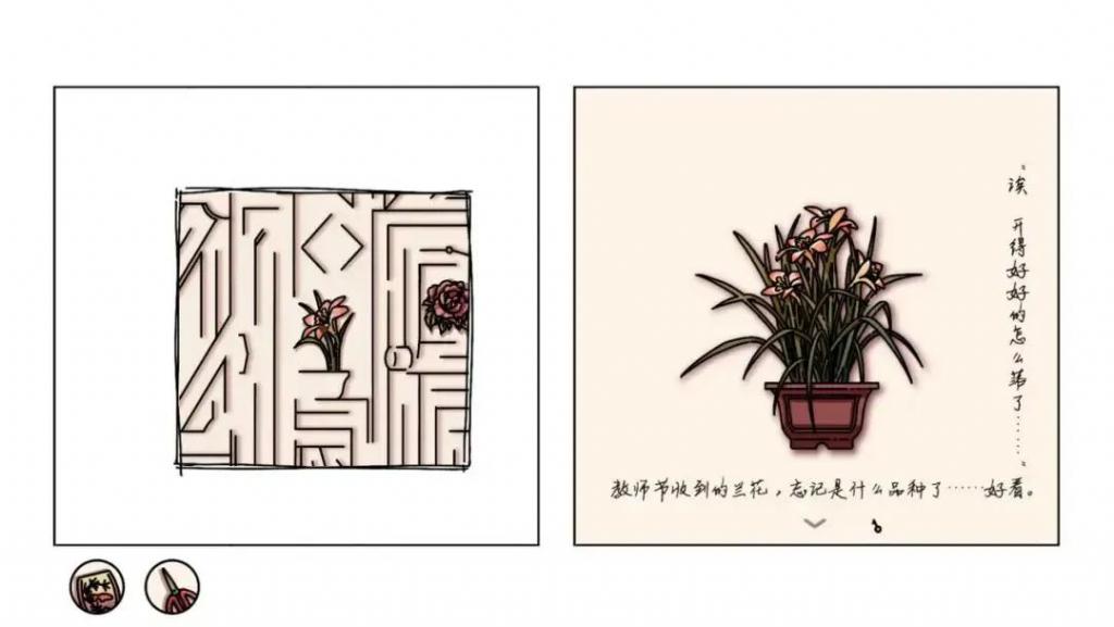 自责的情绪也时常出现。某天醒来,主人公发现窗台上的兰花枯萎了,她嘟囔了几句 " 昨天还开得很美呀 " 后,想起是自己忘记浇水导致的,一下子委屈了起来:" 都怪我 ……"