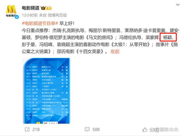 不过在这个情况下,电影频道官微发布的一则节目单引发了热议,因为其中有一部杨颖参演的电影《太极 1:从零开始》在电影频道播出了,官微还带上了杨颖的名字。