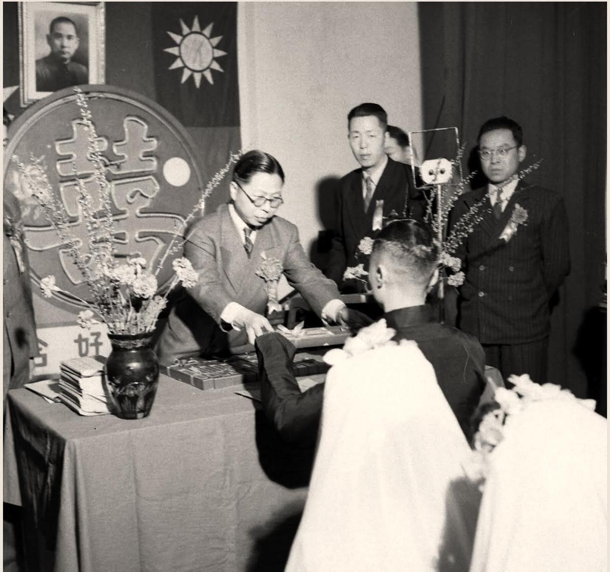 (25)1948年1月,上海市社会局组织的集体婚礼。上海市市长吴国桢亲自祝福。