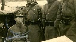 (04)日本《朝日新闻》老照片。图1和图2:1939年3月,被俘的抗日国军战士。图2的说明大意是:“要检阅”照片。审查内容抹去有尸体的背景及高于胸部的捆绑绳索。被俘的是三青团团员。图3和图4,1941年5月,山西。抗日小战士。图片说明大意是:12到13岁的少年。穿着不合身的大号军装。