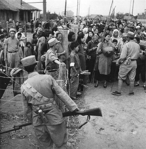 (02)我军在拔掉一个日军据点后俘虏的日军士兵。
