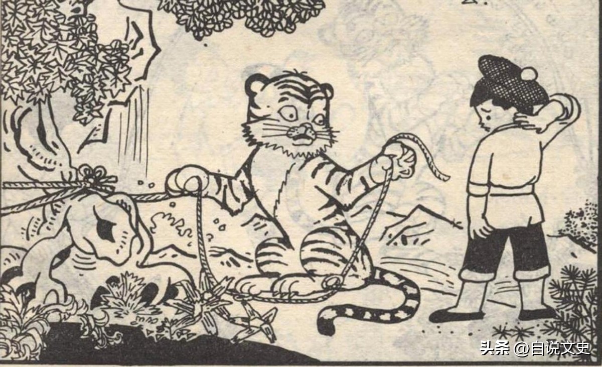 终于,老虎累了,不再折腾了。它看到旁边有稻草人,大怒,几下就把稻草人给撕碎了。问道了猪血后,老虎冲过去,抱着大瓮就开始喝猪血。转眼之间,三斗猪血都被老虎喝完了。喝完之后,老虎回到了洞里。