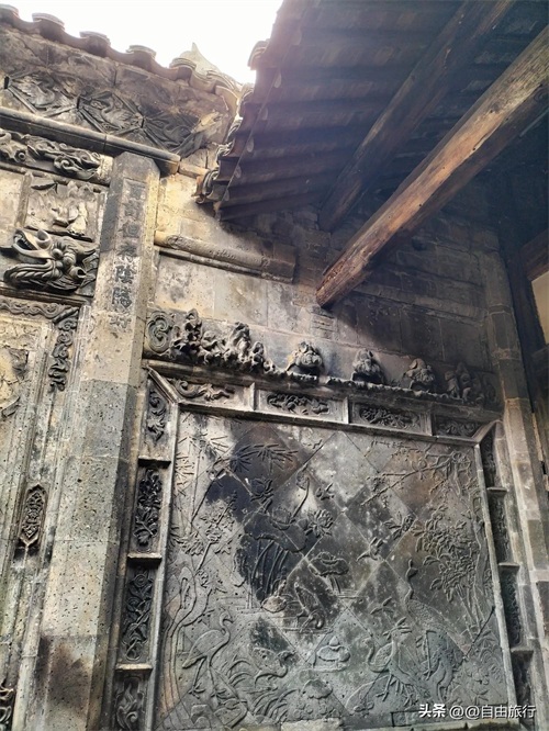 此宅以堂前照壁上的壁画最著称,精美绝伦!壁画分左、中、右三幅,由巨大方砖拼成的三幅浮雕,“丹凤朝阳”、“爵禄封侯”、“荣华富贵”等多种图案,寓意丰富,极有艺术感染力。