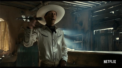 “巴斯特·斯克鲁格斯”身上有很多经典西部英雄的影子,但是科恩兄弟为这个角色注入了一些卡通色彩,还让他唱起了歌,使得故事既轻松、又讽刺。