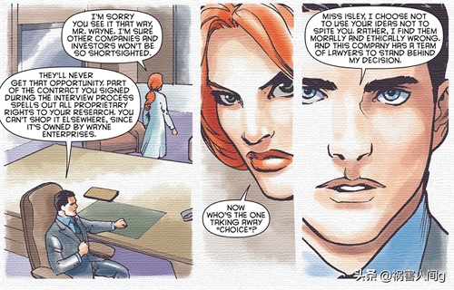 布鲁斯韦恩还开除了帕梅拉,并告诉帕梅拉她的所有研究成果都属于韦恩企业所有,不允许她再使用。