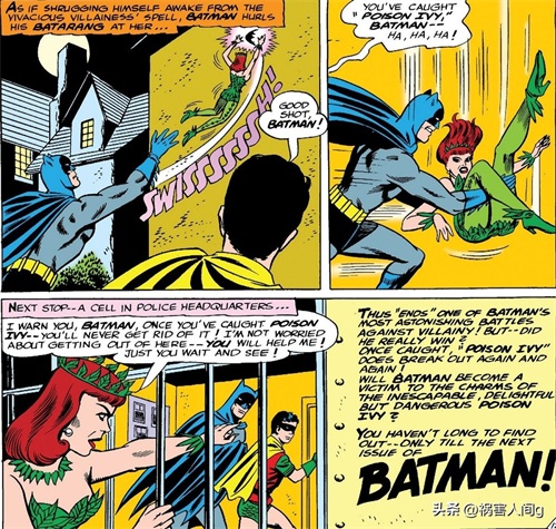 毒藤女虽然取得了胜利,但是她遇到了蝙蝠侠和罗宾。在毒藤女想要利用爬墙的能力逃走时,蝙蝠侠用蝙蝠飞镖将毒藤女打了下来,送入了监狱。