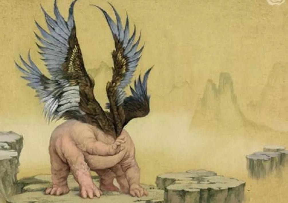 “轰隆”一声巨响,一颗巨大的血球轰然炸裂开来,只见一道形状像黄口袋,颜色火红,有着六只脚四个翅膀,没有面目的生灵幻化而出。