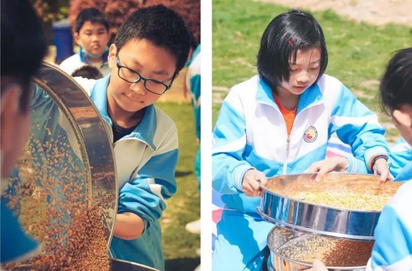 在家长和老师的共同带领下,各年级先后组织了种类丰富的家校活动中,一年级体验农耕、磨豆浆、做花馍,二年级争当“包粽子小能手”,高年级走进种植基地、蔬菜农场,感受到生命的神奇,不仅促进了老师、家长、学生之间的互动,增进了集体荣誉感与凝聚力,也使学校教育与校外实践、课内与课外、师生与社会课堂参与者、校内与校外教育资源得以有效整合,相向而行、共同发力。
