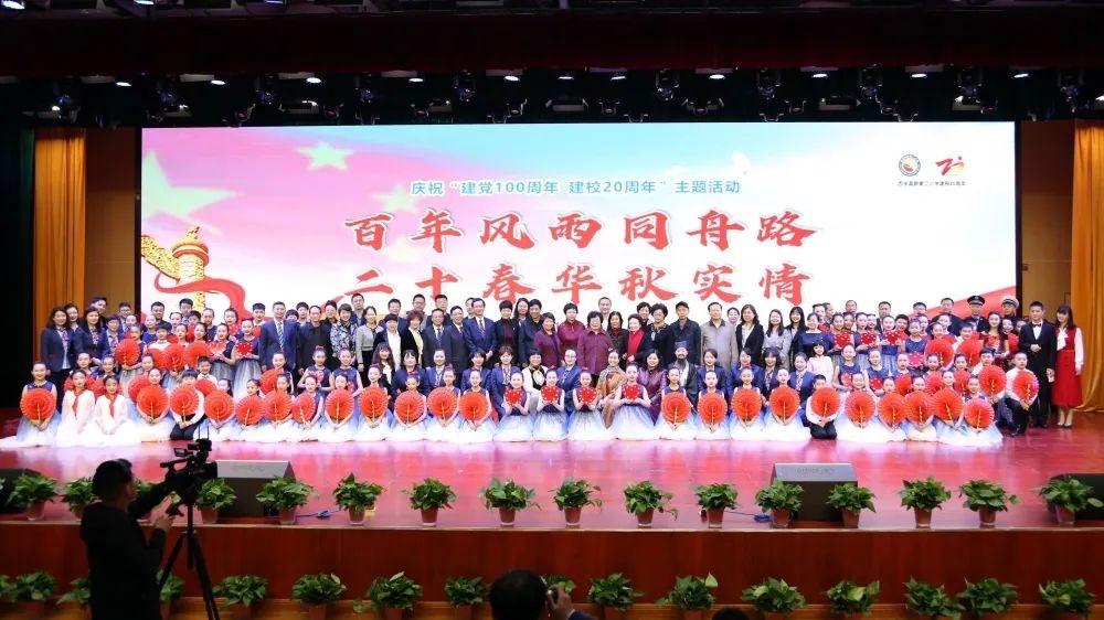 “百年风雨同舟路 二十春华秋实情”主题展演更是恢宏大气。四大篇章,贯穿百年,师生们用自己的舞台语言,集中展示了中国共产党在国家危难中诞生、在攻坚克难中壮大、从胜利走向胜利的伟大历程,精美呈现出高新二小二十年来的办学成果与文化特色,凝聚了每个二小人对祖国、对学校最深情的表达。