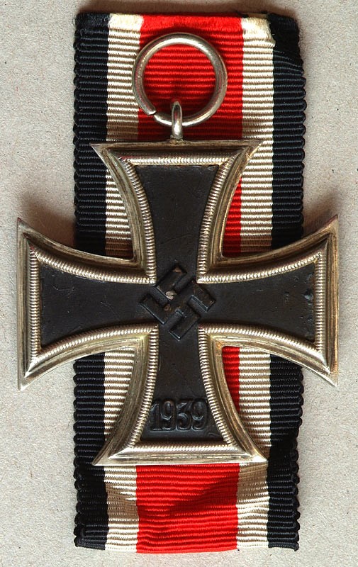 获得条件(通常):在战斗中表现出一次非同寻常的勇敢行为,完成了自己的使命。 铁十字勋章是对战斗中勇敢行为的奖励,也是在战场的氛围中额外的军事性赠与。二级铁十字勋章用绶带悬挂在胸口,一级铁十字勋章则放在胸前的口袋里。铁十字勋章是可以升级的奖品,用二级勋章的可以升级至一级或骑士铁十字勋章甚至更高的勋章。通常铁十字勋章是由部队指挥官提名授予的,而二级铁十字勋章也被用以奖励非德籍或非战斗人员。估计在第二次世界大战中有大约500万枚二级勋章(包括“1939”式装饰)及大约73万枚一级勋章(包括“1939”式装饰)被颁发。二级铁十字勋章最年轻获得者是一位12岁的希特勒青年团团员。一级铁十字勋章共有两位女性获得,其中一位是飞行测试员汉纳·瑞奇。