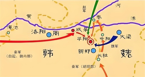 秦国一看机会来了,秦国一直想攻打齐国的陶邑,但是地理位置不接壤,想要打通通道就得先灭魏国,对秦国有利。于是魏冉立即拍板决定,出兵迎战华阳。穰侯魏冉、客卿胡阳和武安君白起,兵分两路整军出发。