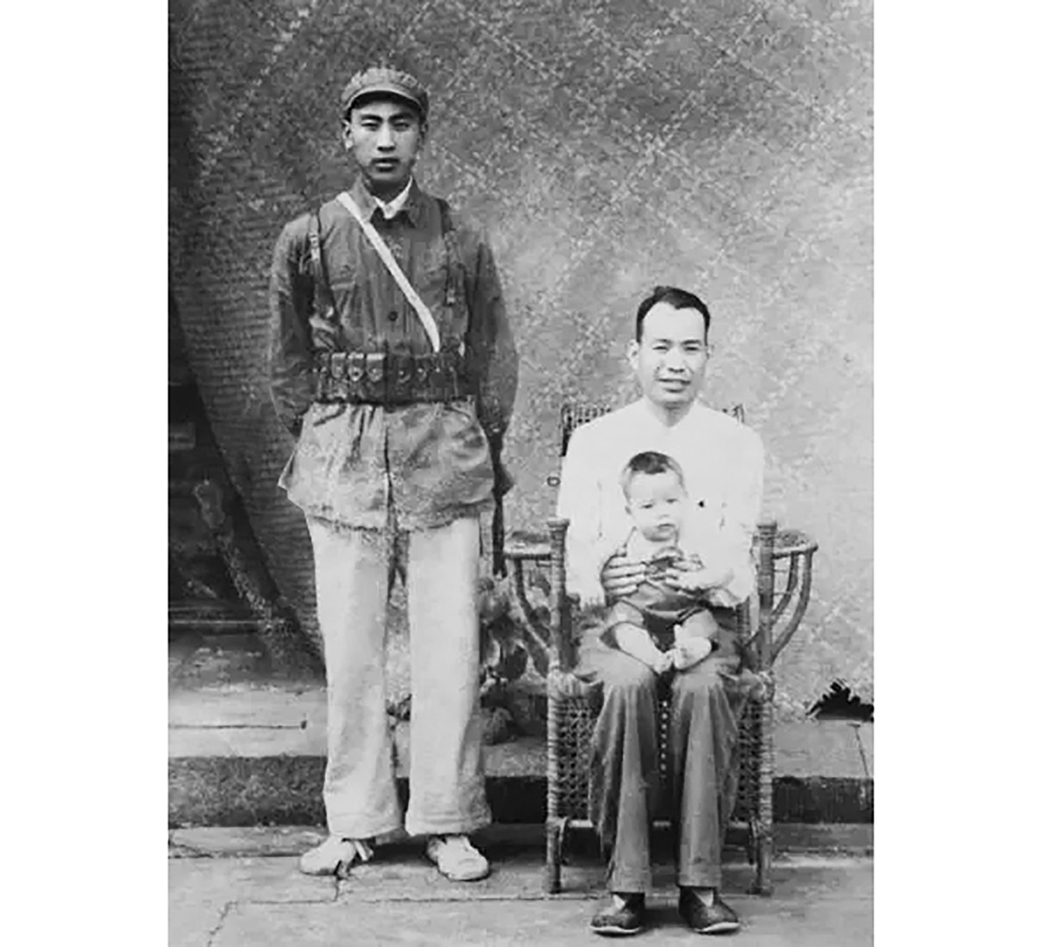 1949年夏,赵铁英在安徽省歙县工作时与女儿、警卫员合影。抱孩子者为赵铁英。