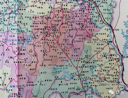 同治版《随州志》卷五水载:浪水一出州南七十里大猿山,俗称紫山,一出州西南土山。源于紫山者,北迳珠宝山,西北迳巫山,折而东迳君子山北,又东合三河水,又东迳清水寺,又东北至光化铺南入涢。源于土山者,东迳柳林店,又东合罗家河水、两河水,两河源出王家店北,东流至此合柳林水,东至三河口合水口庙水,又东南人浪水,同入于涢。(大狐山究竟是巫山还是紫山?《随州志》此处记载前后矛盾,今查有关资料,大猿山实为巫山——作者注)