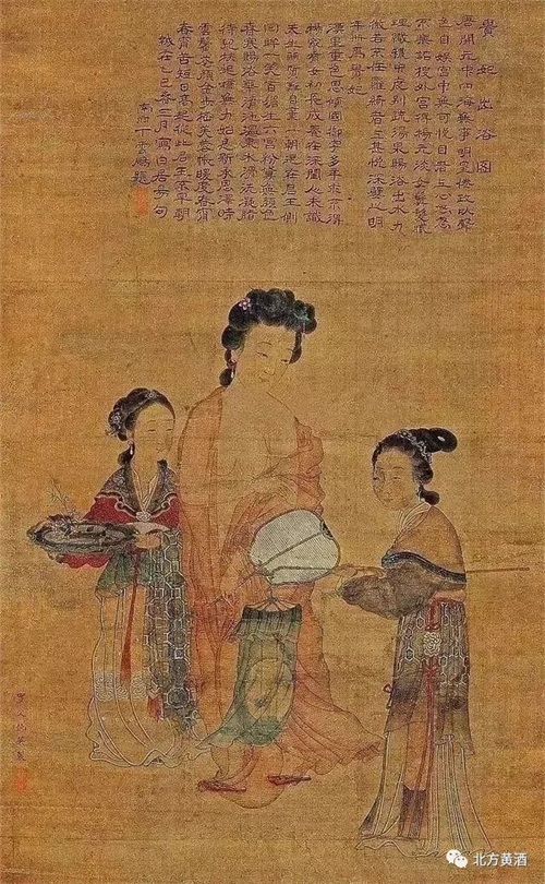 相传杨贵妃与唐玄宗如胶似漆,二人常在一起饮酒作乐,一日,唐玄宗约杨贵妃在百花亭内一聚,共同赏花饮酒,杨贵妃提前去了百花亭做准备,到了约定的时间,唐玄宗还不来,杨贵妃等了又等,等了又等,之间太监高力士来报,唐玄宗已经在别的宫里宠幸其他妃子。一时之间,杨贵妃又气又恼,觉得唐玄宗背弃了自己,心生幽怨,于是开始自顾自的喝酒,越喝越多越不清醒。杨玉环本就是善妒媚浪的女子,现在又听闻皇帝去了别的妃子处过夜,心中愤懑,难以排解,几倍烈酒下肚,酒兴使然,顿时横生媚态。借酒消愁使得贵妃醉酒成为可能,古代皇帝后宫争宠是历史剧有无数,所以杨玉环受此待遇下,饮酒至醉实有可能,并非仅仅是艺术形式的加工想象。