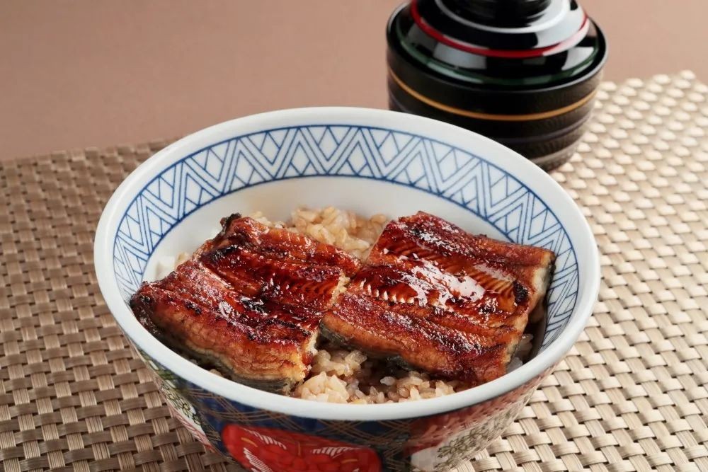 「鰻丼」即“鳗鱼盖饭”,关于它还有是“丼始祖”的说法,意为历史最悠久的丼物。关于它的起源在我们之前关于“日本鳗鲡”的文章中也有提及,江户时代文化年间有一个名叫大久保今助的剧团老板特别爱吃蒲烧鳗鱼,但在演出旺季因忙于工作,点了烤鳗鱼外卖总不能及时吃,面对冷掉的鳗鱼,他觉得人生实在太悲催了,于是让助理将刚烤好的鳗鱼放在装了热米饭的容器里,米饭帮助鳗鱼保温,鳗鱼汁又渗入米饭带来脂肪与香气,美好的「鰻丼」便诞生了。