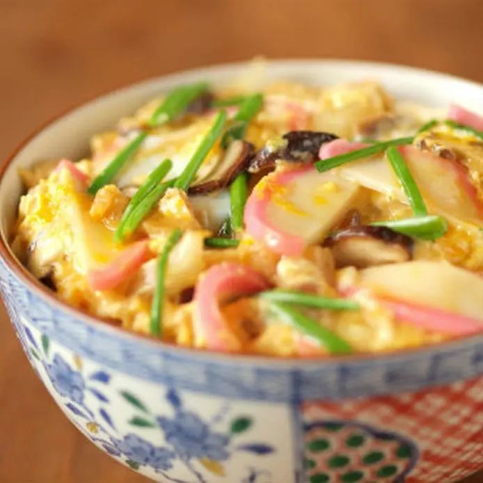 「木の葉丼」可翻译为“树叶丼”,其名字源于散落在米饭上的食材看起来像树叶。它是将切成薄片的蒲鉾(鱼糕)和葱、鸡蛋一同制作而来的盖饭,还有加入香菇、鸭儿芹、竹笋的情况。树叶丼发祥于日本近畿地区,作为便捷便宜的家庭料理为人熟知。