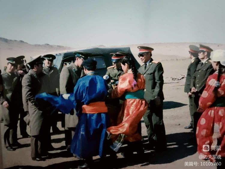 军区、分区、边防三团首长与边防营领导在宝格达山哨所会哨时合影