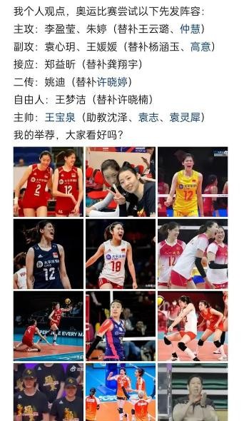 巴黎奥运会的中国女排7人先发阵容被球迷举荐了出来,这7人的年龄分布情况也是比较均衡,既有年轻一代,又有老将把持,因此笔者就把这7位球员的名字展示如下:“