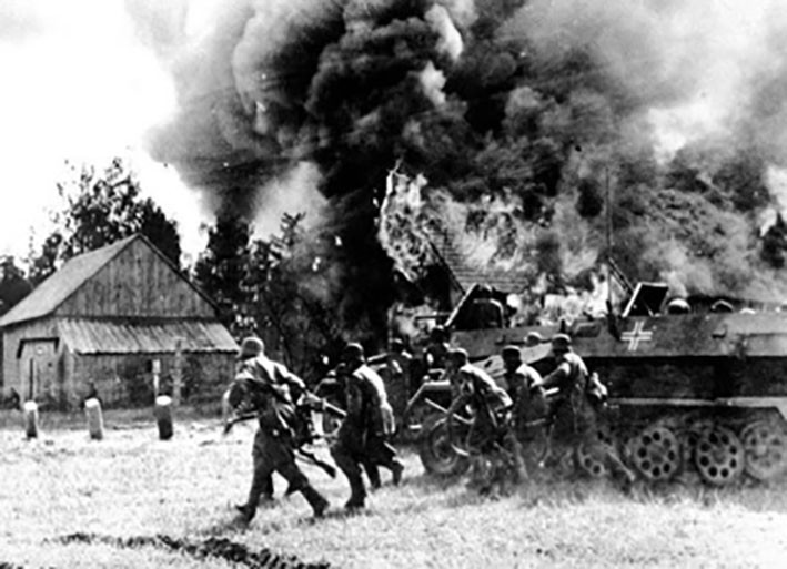 由于苏军是攻,德军是守,临时组建的小分队损失惨重。为了拿下敌人阵地,戈林比耶夫斯基将生死置之度外,与战友猛烈地向德军阵地冲去。