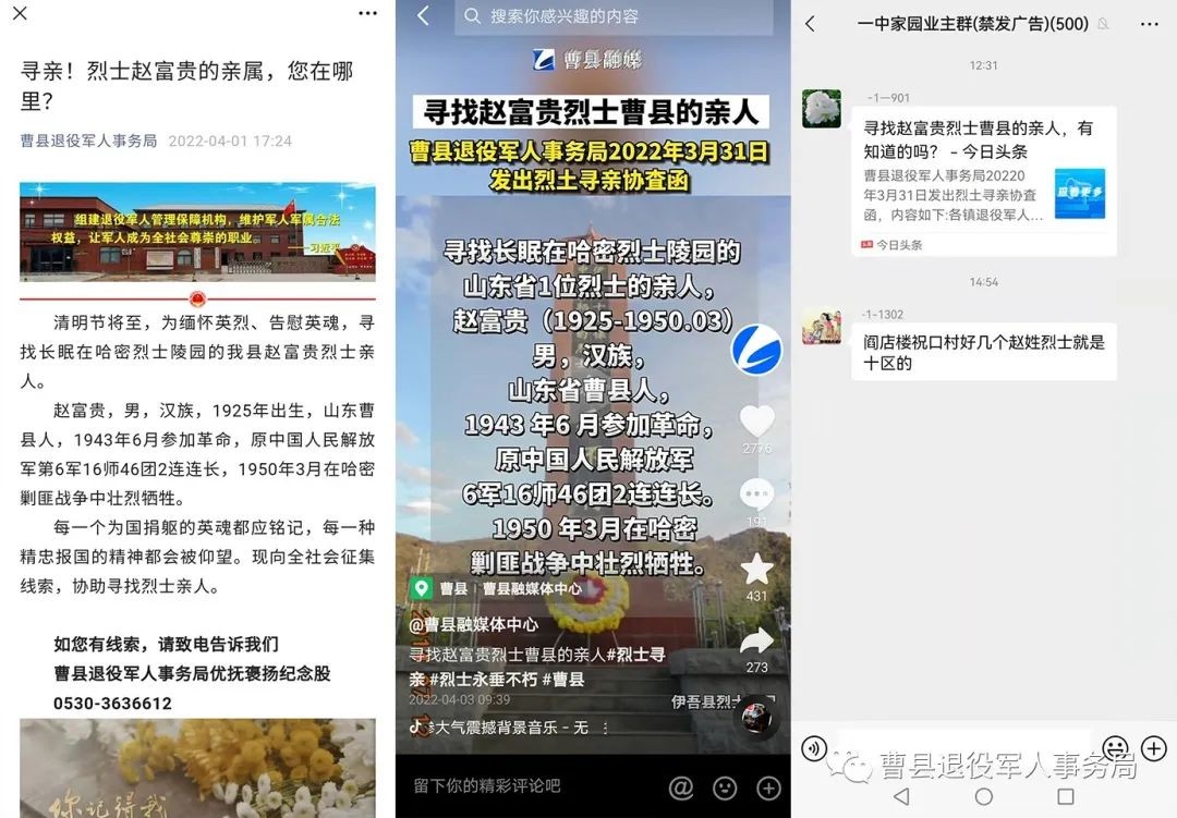 (有兴趣的可查看《我参与家乡曹县籍烈士赵富贵寻亲活动,烈士亲属找到了》头条。)