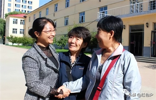 傅家姐妹在密山市第三中学找到时任副校长的侄女傅胜瑛(左),三人相拥细说革命家史