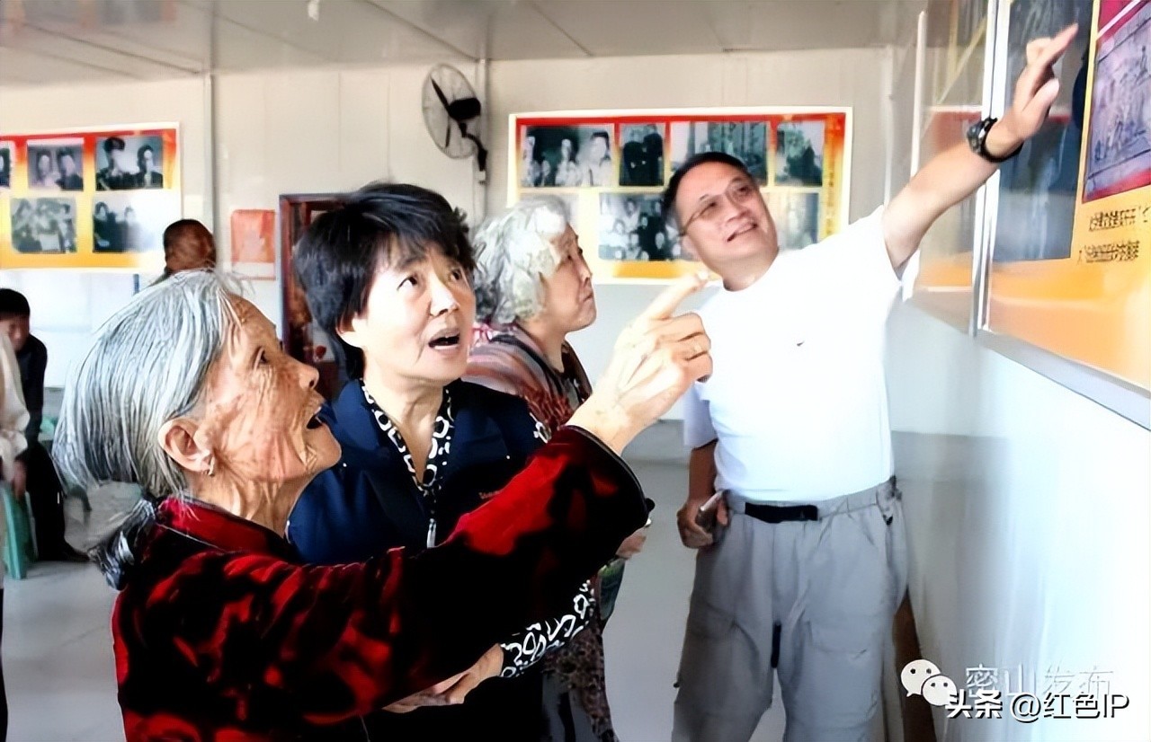 傅明琪(左二)、吴德峰之女吴持生(右二,其父为我党隐蔽战线的奠基人)、盛晓鹰(右一)在亲属的陪同下观看历史资料