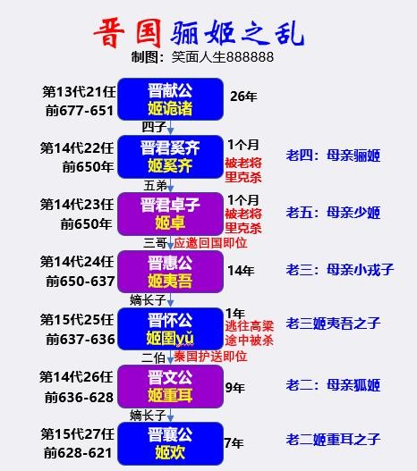晋献公杀光了所有旁系潜在继承者,只剩自己直系后代,晋国王位之争依然激烈。