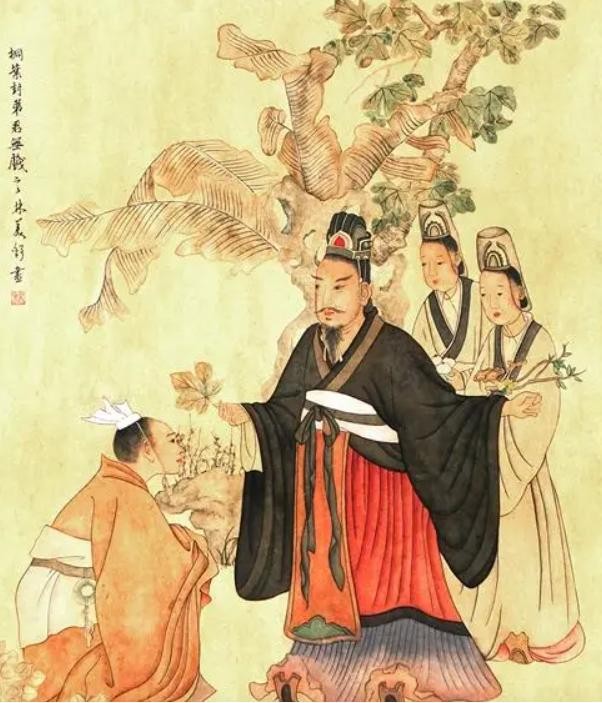 周成王姬诵有个同父同母的弟弟姬虞,二人的母亲邑姜是姜子牙的女儿。年幼的周成王姬诵与弟弟姬虞玩耍时,捡起地上一片梧桐叶,跟弟弟说:余以此封汝,意思是我用这个梧桐叶当做玉圭来分封你,当时分封诸侯时会以玉圭为凭证,诸侯觐见天子时也要持玉圭以代表自己的身份,不同等级的诸侯所持有的玉圭尺寸和材质都会有差异。周成王只是跟弟弟玩耍时的玩笑话,却被史官记录下来,并在后面追问周成王什么时候分封弟弟姬虞。周成王解释说自己只是跟弟弟玩耍时的玩笑话,史官却说:君无戏言,只要天子说了,史官就会记录下来,礼官就会按照礼仪落实,乐官就会奏乐歌颂。周成王只好履行承诺,将弟弟姬虞分封到刚刚平定叛乱的唐国(今山西临汾)。