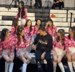 这次西热力江来到深圳参加篮球活动,趁机也和拉拉队员们合了一把影,坐在拉拉队员中间的西热力江有一种众星拱月的感觉。在这次合影中,西热力江坐在第一排正中间,两边和后边都是漂亮的拉拉队员。