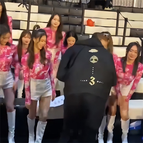 西热力江听到旁人这么喊,也开心的笑了,合影之后西热力江还是很有态度的,他站起来向啦啦队们鞠躬表示感谢,非常暖心。
