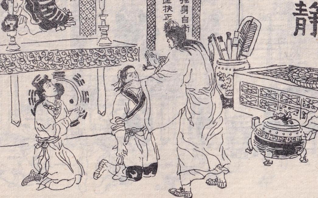 兄妹俩心急如焚,一口气奔到观内,浮尘道长端坐蒲团,脸色阴郁,一言不发。如此等了几个时辰,清风、明月气喘吁吁地奔进来道:“师父,我们去迟一步,彭青夫妇已被史贼杀害..·”