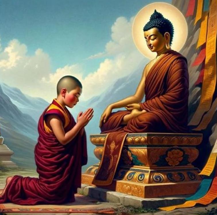 只见佛陀的嘴角泛起一丝神秘的微笑,缓缓开口道:"在很久以前,有一个与你非常相似的人......"