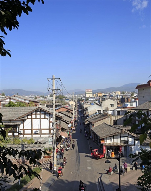 古城成了游客的必游之地,来古城游玩的游客络绎不绝,大通楼上,几棵大榕树浓荫密布,三五成群的人正在树下喝茶。宽阔的坝子中间,有飞檐翘角、雕梁画栋的房屋。城楼一边,青色的城墙蜿蜒开去。从喧闹的城市,一下来到这古城楼之上,清幽宁静,有种穿越时空的错觉。