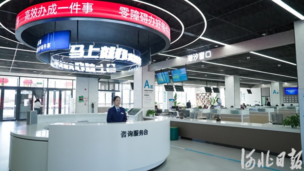 2月5日,雄安新区政务服务中心咨询服务台工作人员迎接办事群众的到来。河北日报记者李畅摄