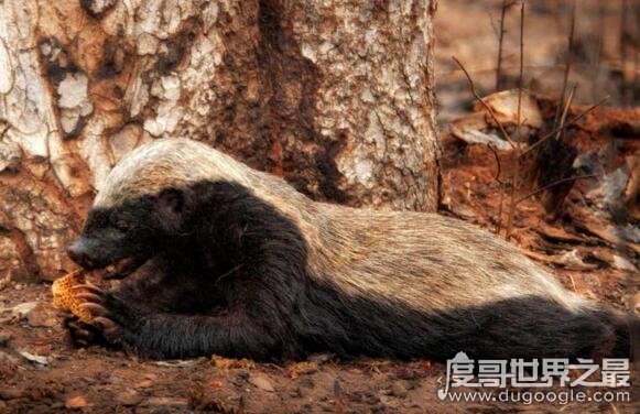 平头哥的本名叫蜜獾,但却并不是因为它的长相甜美可爱,而是因为最喜欢的食物就是蜂蜜,就算是用生命为代价,也要上去吃一口。虽然平头哥的毛皮很厚实,但是依然有小部分平头哥被蛰死,但是依旧无法阻止它们继续掏蜂窝。这样的不要命行为,可不仅仅是在吃蜂蜜的行为上。