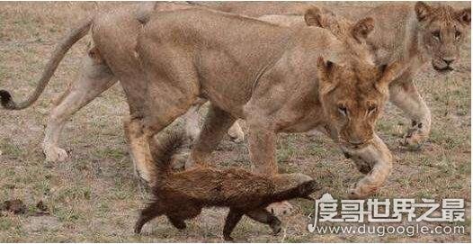 平头哥蜜獾只有一只狐狸大小,但是在非洲大草原上单挑鬣狗和狮子,并且存活的几率非常大,它的抗击打能力是非常强的,而且自身的咬合力非常强。一般一只狮子想要杀死一只平头哥需要2个小时左右,而猎豹需要3个小时,所以一般都不惹平头哥,甚至有时候还会追着狮子跑,可以脑补一下画面。
