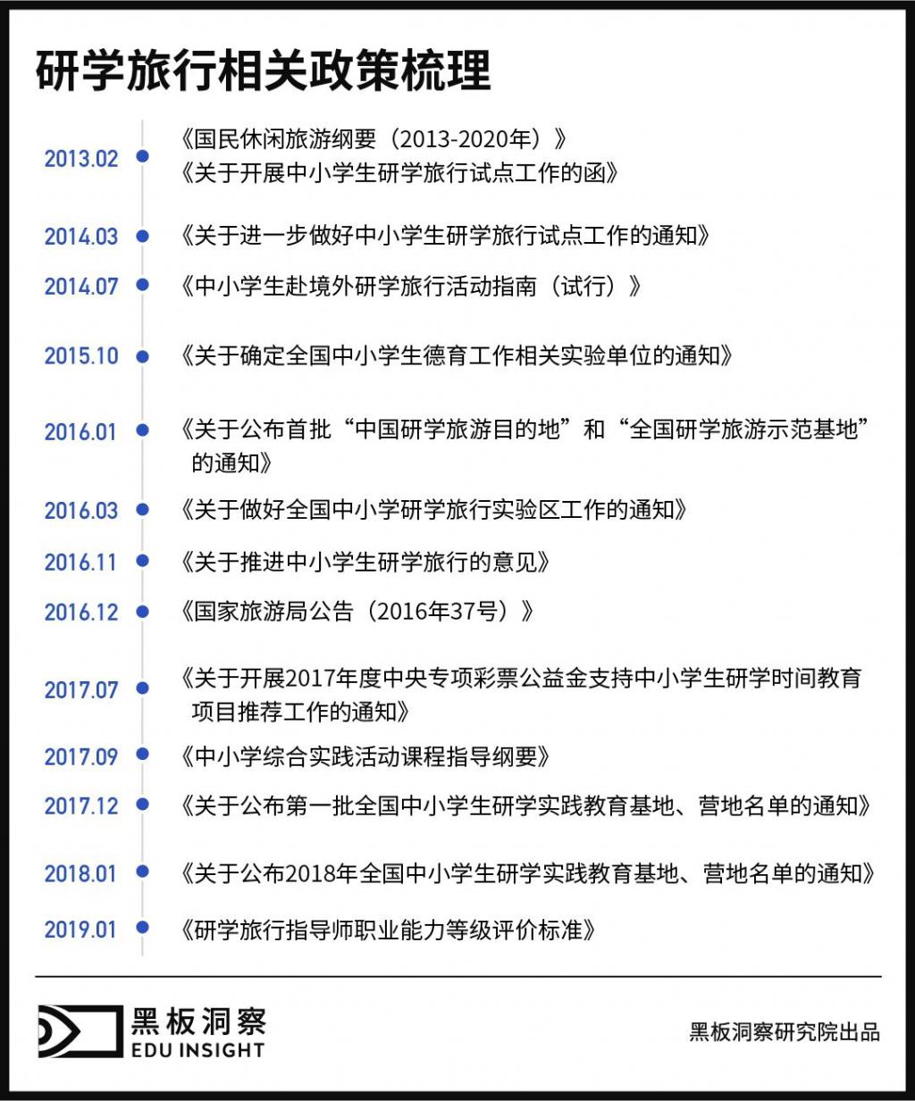 回到最初," 研学 " 一词,出现在校内。2013 年 2 月,国务院印发的《国民旅游休闲纲要(2013 — 2025 年)》中首次从国家层面提出研学旅行实践教育的规划,明确 " 研学旅行 " 这一关键词。而后提出将其纳入到中小学生综合素质教育范畴。