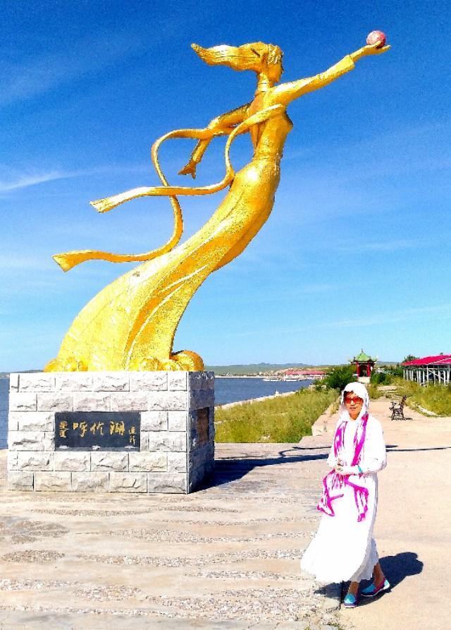 (作者夫人在呼伦湖)