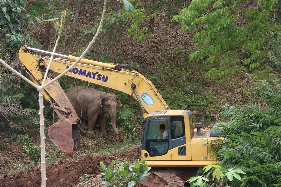 神兵天降!野生亚洲象坠坑,象与人接力救援