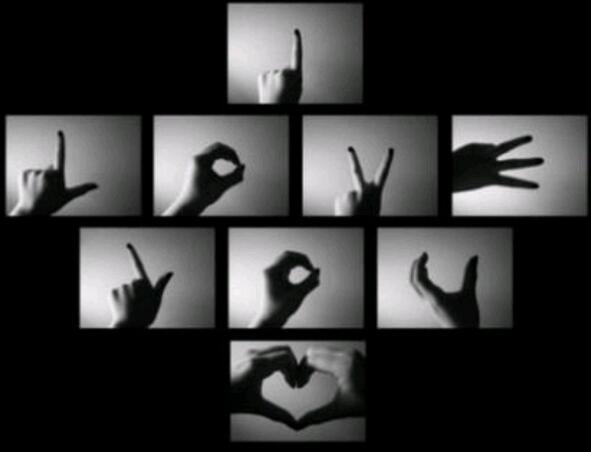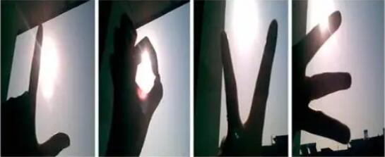 “8”,把左手大拇指和食指叉开,竖放 代表“L”;