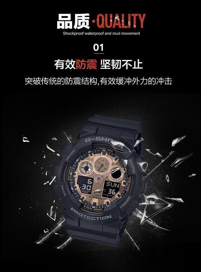 卡西欧G-SHOCK运动手表以出色的防水防震和各种功能户外功能,一直深受青年以及户外运动爱好者喜爱。卡西欧G-SHOCK GA-100MMC-1A黑金防水防震手表采用卡西欧手表经典的黑色外壳和金色哑光表盘的经典外形设计。表盘采用了双显设计,独立指针加多功能夜景数字显示,并配有自动LED双重照明,即使弱光环境,也可以清晰读取时间。在功能上,手表具备世界时间设置、全自动日历、秒表、倒计时、闹钟等功能。在表身设计上,卡西欧G-SHOCK采用的独特防震、防水结构设计,提供200米防水设计。在京东商城,卡西欧G-SHOCK黑金防水防震防运动手表GA-100MMC-1A腕表五折销售,原价890元,现价445元,为一年最低价,值得关注。