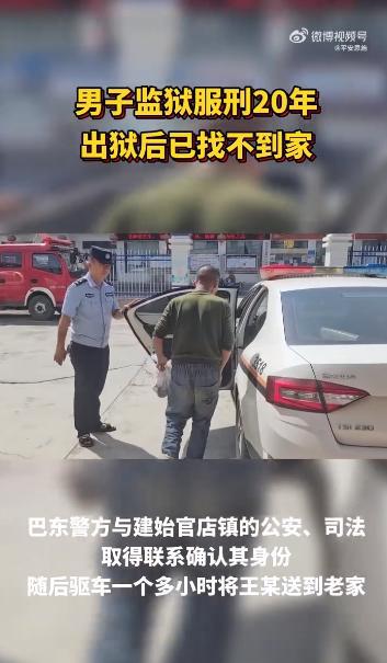 近日,湖北巴东,一男子试图寻找回家的方向时被恩施民辅警发现。据了解,王某自成年后离家外出务工,又因严重刑事犯罪在外地监狱服刑 20 年,前后近 30 年未回过家,恍恍惚惚来到巴东金果坪,被巴东县公安局金果坪派出所民辅警发现。巴东警方与其老家的公安、司法取得联系并确认身份后,驱车一个多小时将其送了回去。