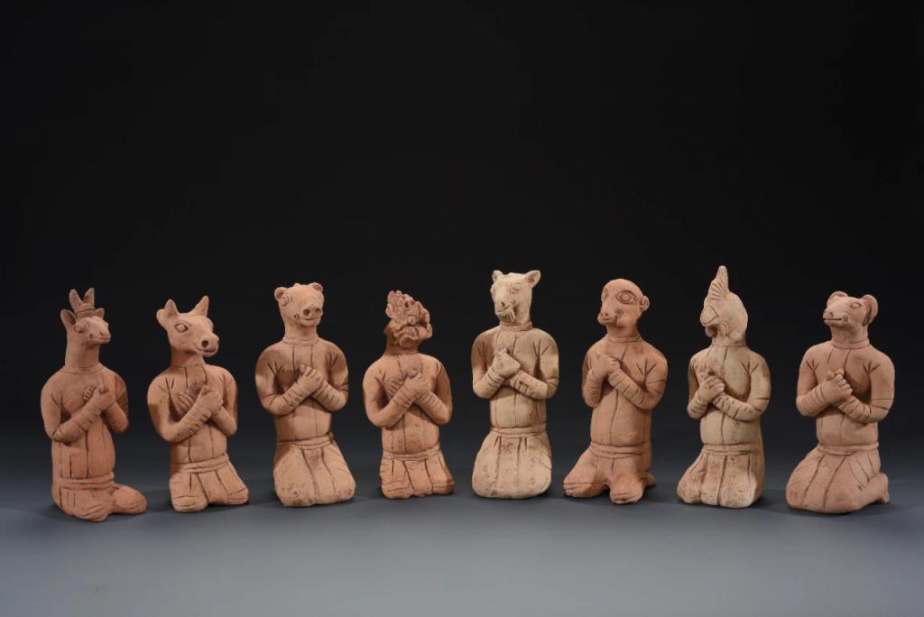 据悉,这组陶生肖俑共包括 8 个生肖,分别是鼠、牛、龙、马、羊、猴、鸡、狗,是目前广州地区考古发现的唯一一例生肖俑,现在南汉二陵博物馆展出。