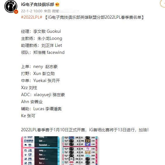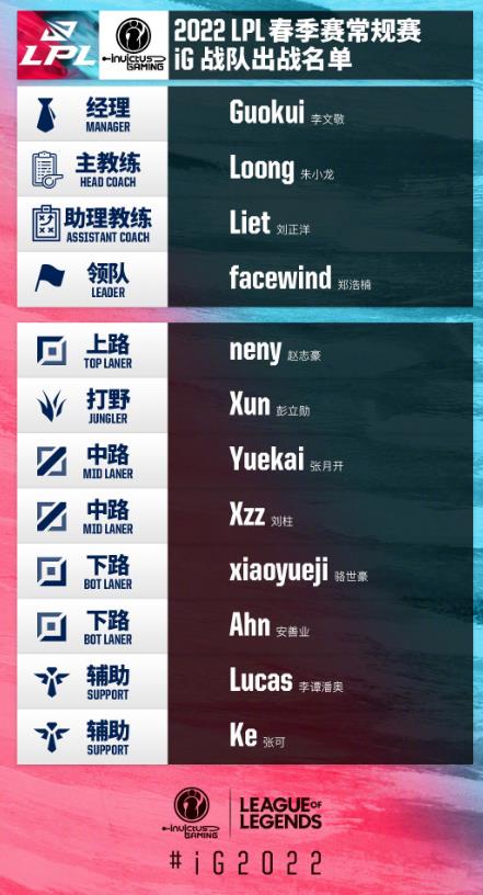 IG官宣LPL春季赛大名单