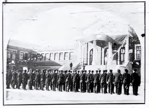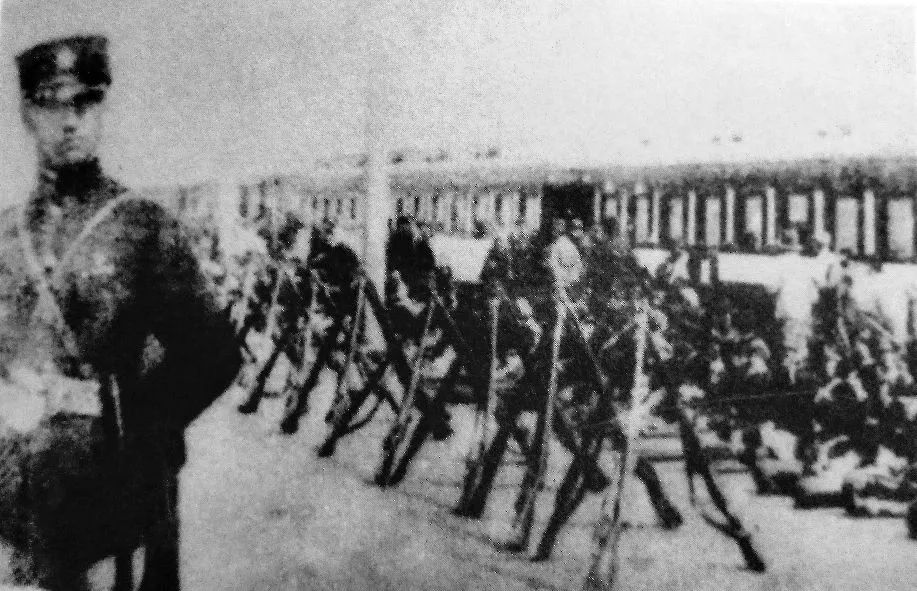冯庸大学义勇军誓师典礼。该校在当时知名度很高,曾组织学生抗日义勇军参加淞沪会战、热河抗战等。